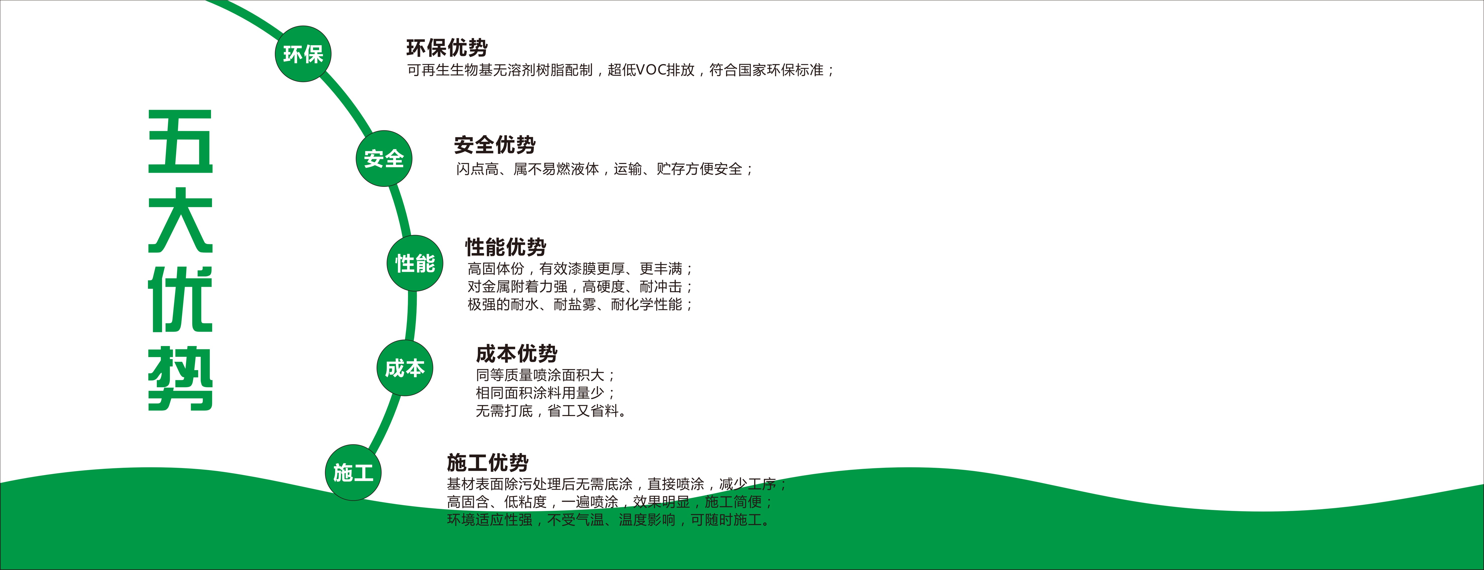 本公司对水性工业金属漆、水性塑胶漆、水性汽车漆、水性闪光漆、水性木器漆、水性纳米喷镀涂料、水性电镀光油有丰富的应用经验,在工业设备生产、汽车配件、实木家具、化妆品、保温杯等领域的各项指标优异;均能达到行业内先进水平。水性纳米喷镀产品将取代电镀、真空镀膜、阳极氧化工艺。产品环保、没有污染、绿色健康。真正符合欧盟强制性SGS认证。
